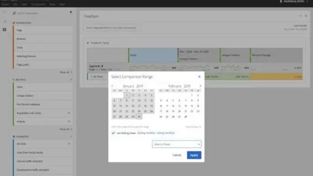 How to create a report with automatic rolling date ranges in Adobe Analytics. Monthly dashboards were created in Adobe Analytics to compare some metrics to previous months.